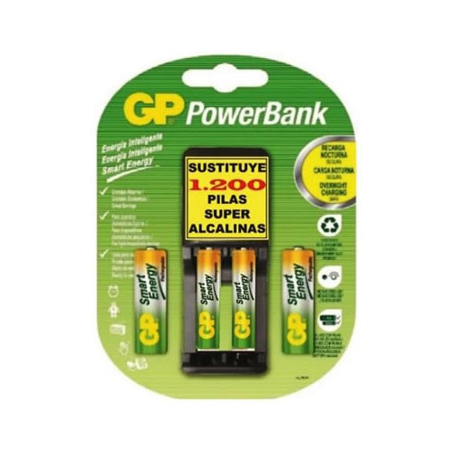 El cargador GP que se describe en los resultados es compatible con pilas recargables AA y AAA. Un modelo incluye dos pilas AAA de 400 mAh y dos pilas AA de 1000 mAh. Otro modelo, junto con el cargador, incluye dos pilas AA de 2100 mAh y dos pilas AAA de 800 mAh.